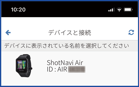 デバイス検索を行っています。見つからなかった場合はタップして再検索してくださいの部分にタッチして再検索をお試しください