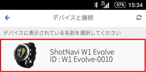 デバイス検索を行っています。見つからなかった場合はタップして再検索してくださいの部分にタッチして再検索をお試しください