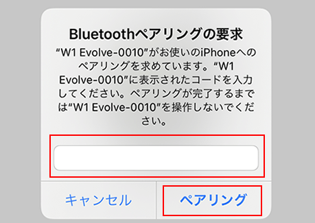 数字の入力を求められたら、端末に表示された数字6桁(PINコード)を入力してペアリングを押します