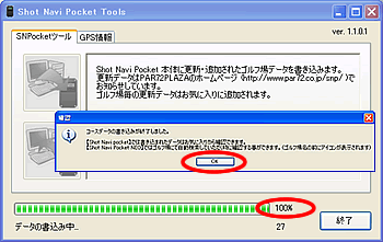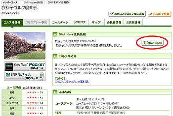 [Windows XPの場合] Shot Navi Pocket Tools を開く スタート → すべてのプログラム → PAR72PLAZA → Shot Navi Pocket → 左上のダウンロードボタン をクリック