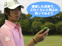 地点登録後、飛距離表示用画面に切り替わるのを確認し、ティーショットを打ちます。