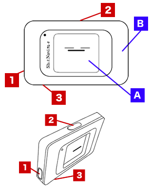長押しで電源 ON / OFF、短押しで飛距離計測・地点登録・スコア入力を行います。